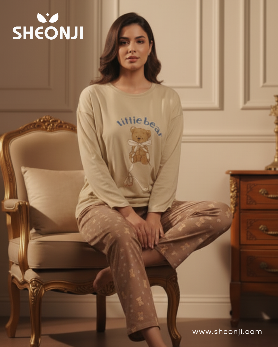 Experience the ultimate in softness and relaxation with the Cloud Puff PJ set, a premium long-sleeved set from the elegant Moonlight & Dreams series. Designed for the modern woman who seeks both sweet style and supreme comfort, this pajama set is the perfect addition to your nightwear and loungewear wardrobe.