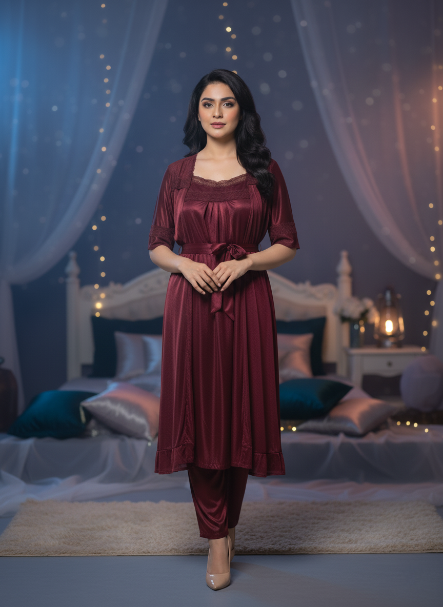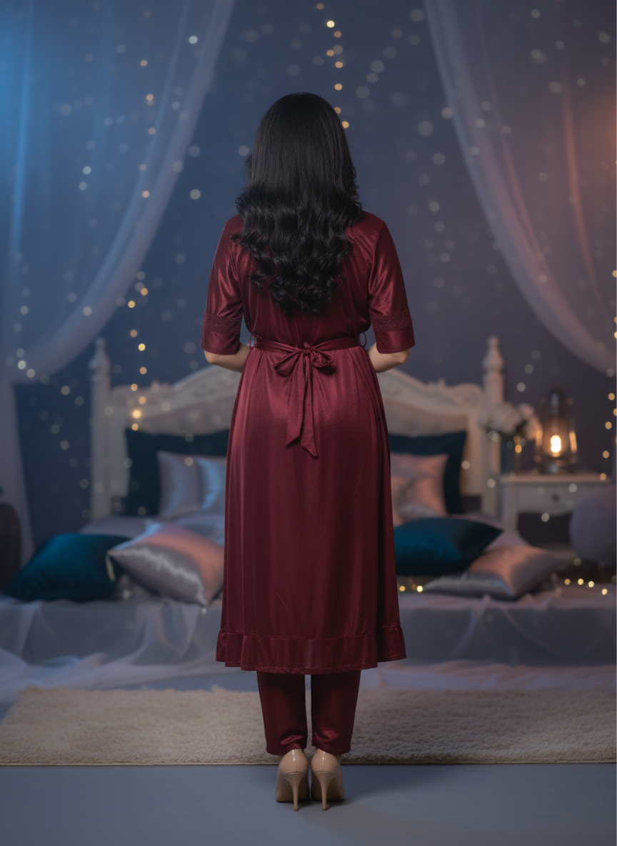 3-piece premium silk nightwear set (robe, slip, and matching inner)