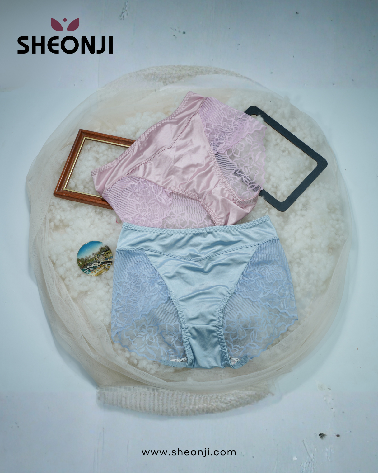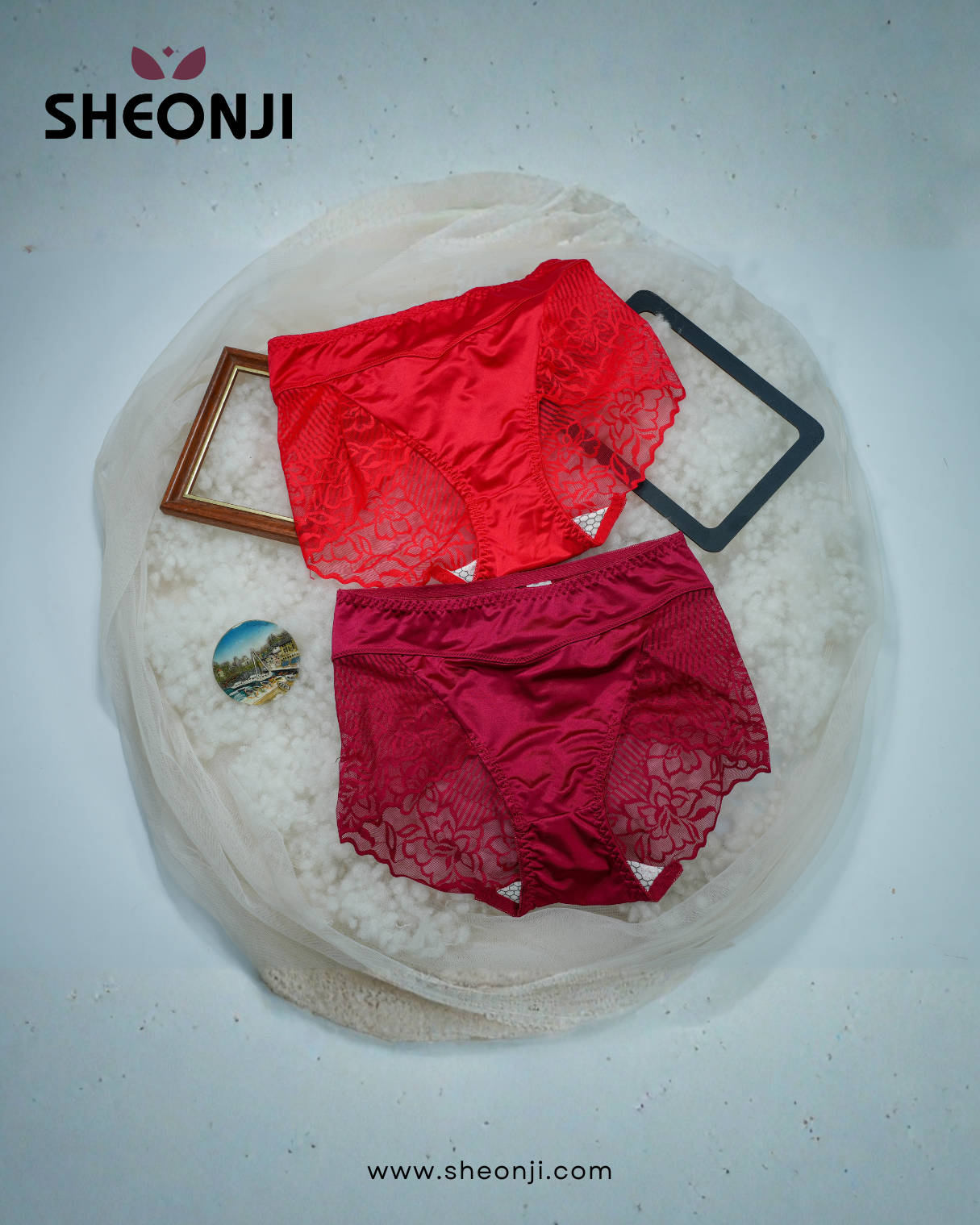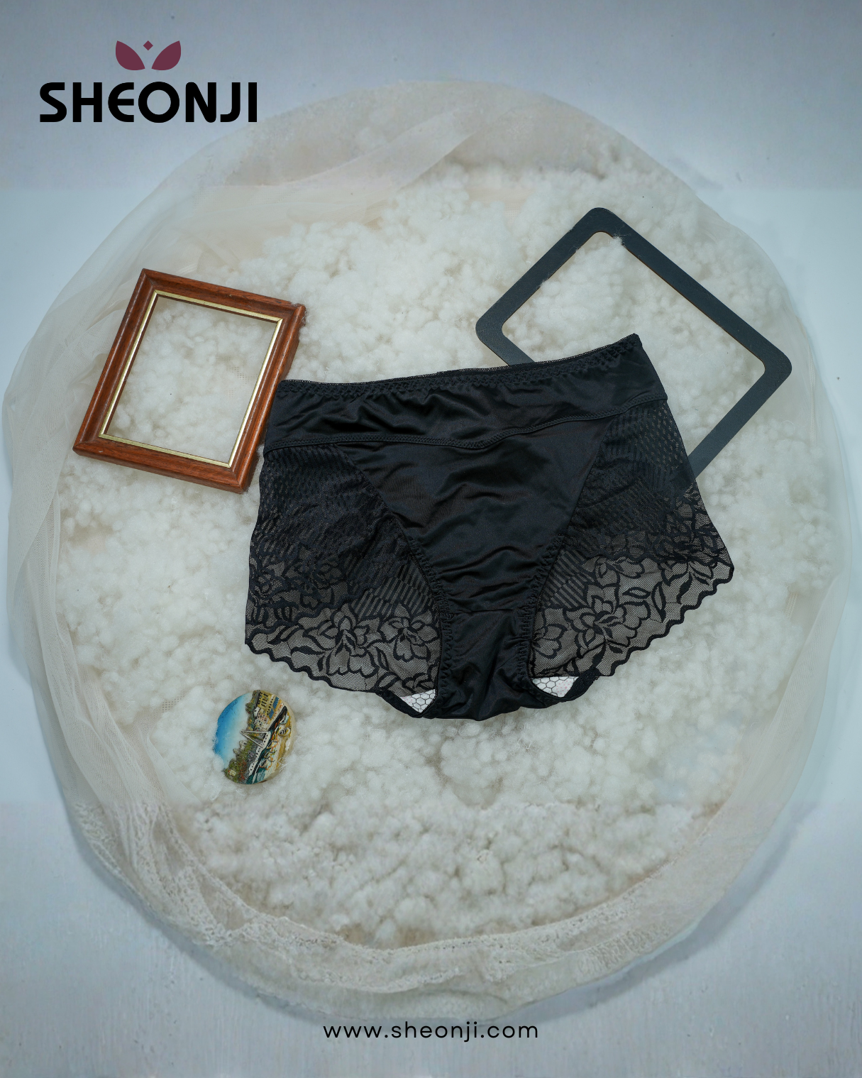 The front panel is crafted from a smooth, satin-like fabric that feels incredibly soft against the skin and provides a sleek look under clothing. The sides and back are beautifully detailed with intricate floral net lace, which offers a gorgeous texture, breathability, and a subtle, alluring transparency. The gentle stretch and full-coverage brief cut ensure a comfortable, secure fit all day long, while the scalloped lace edges add a touch of timeless elegance. Available in a variety of rich colors, this pantie is the perfect blend of practical design and beautiful detailing.