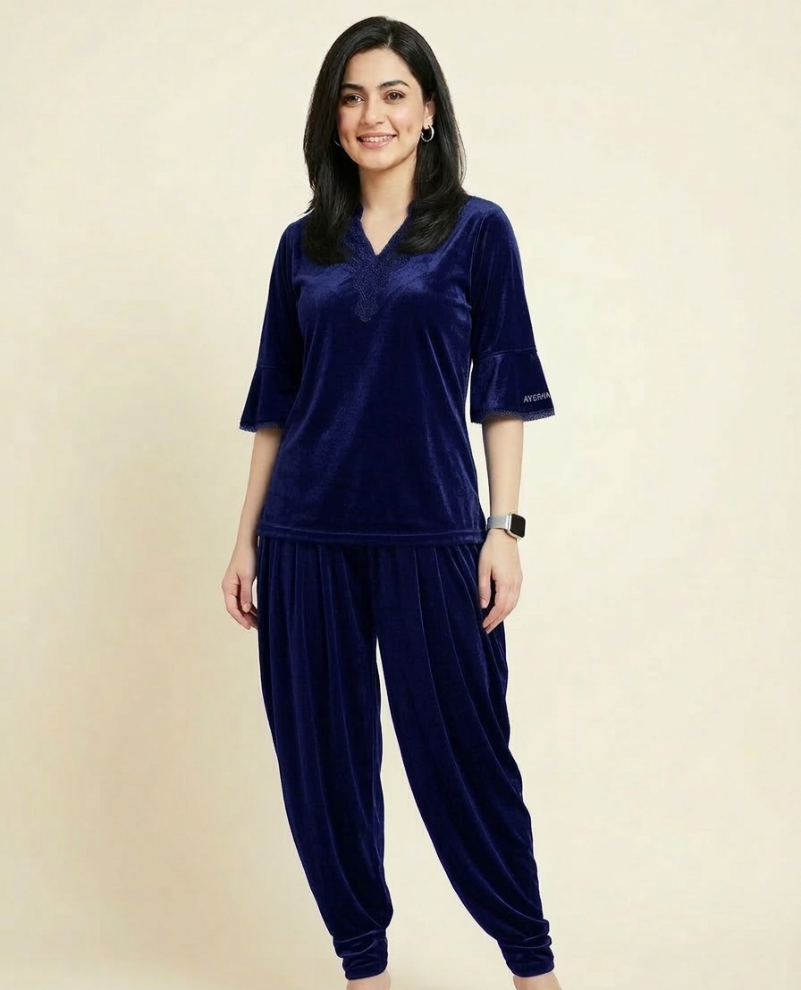 Experience a blend of tradition and comfort with our Patyala Shalwar Nightwear, a stylish 2-piece set designed for a relaxed yet elegant look. This ensemble features a soft-textured tunic top paired with a classic pleated Patyala-style shalwar, offering maximum comfort for lounging.